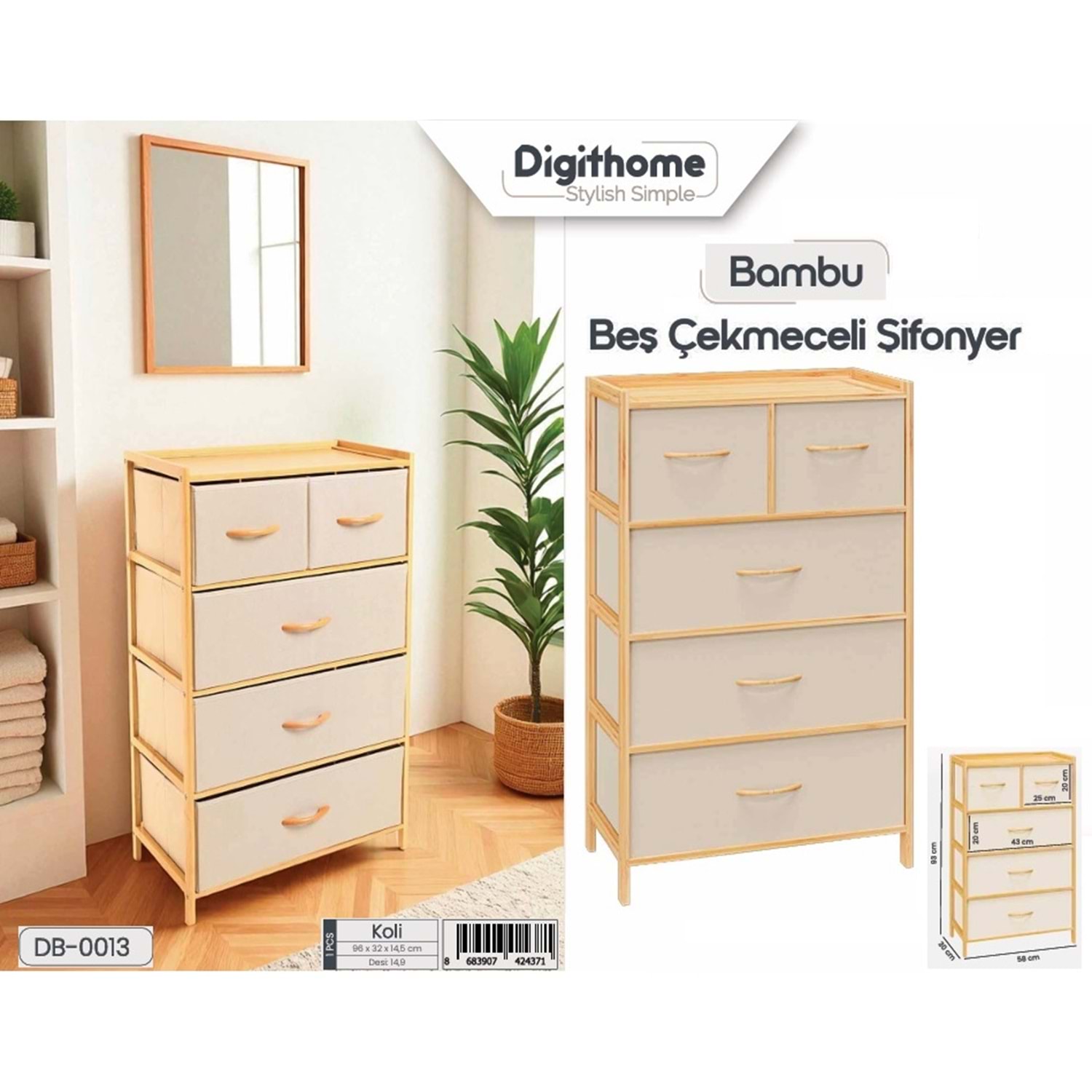 DB.013 -AHŞAP ŞİFONYER 5 RAFLI -ŞAMLI