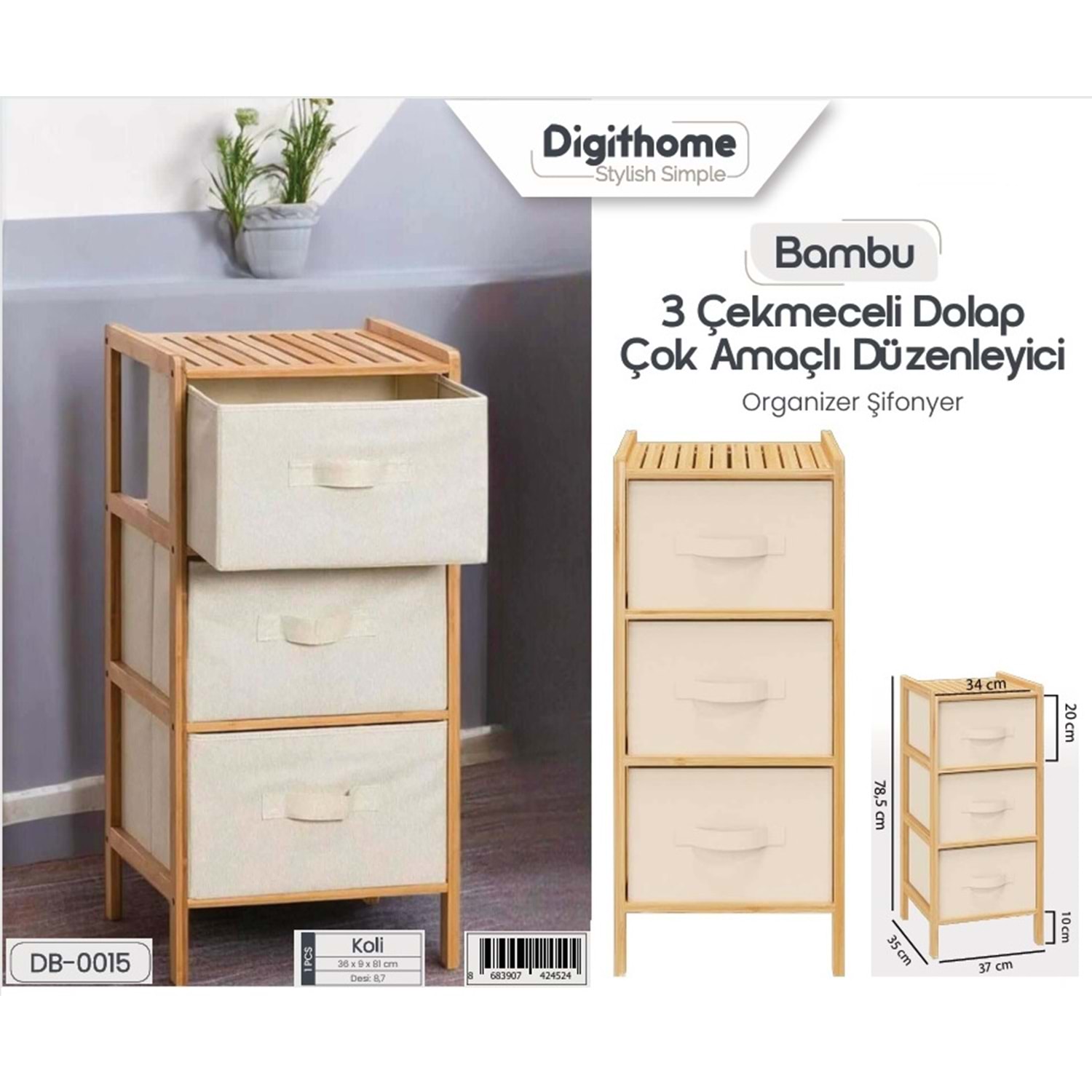 DB.015 -AHŞAP DOLAP 3 RAFLI -ŞAMLI