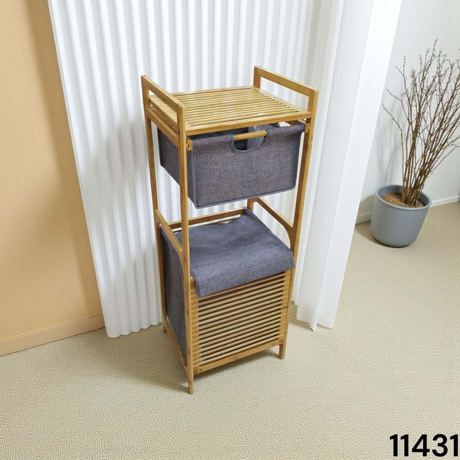 11431-BAMBU ÇAMAŞIR SEPETİ RAFLI -ALLEGRİ