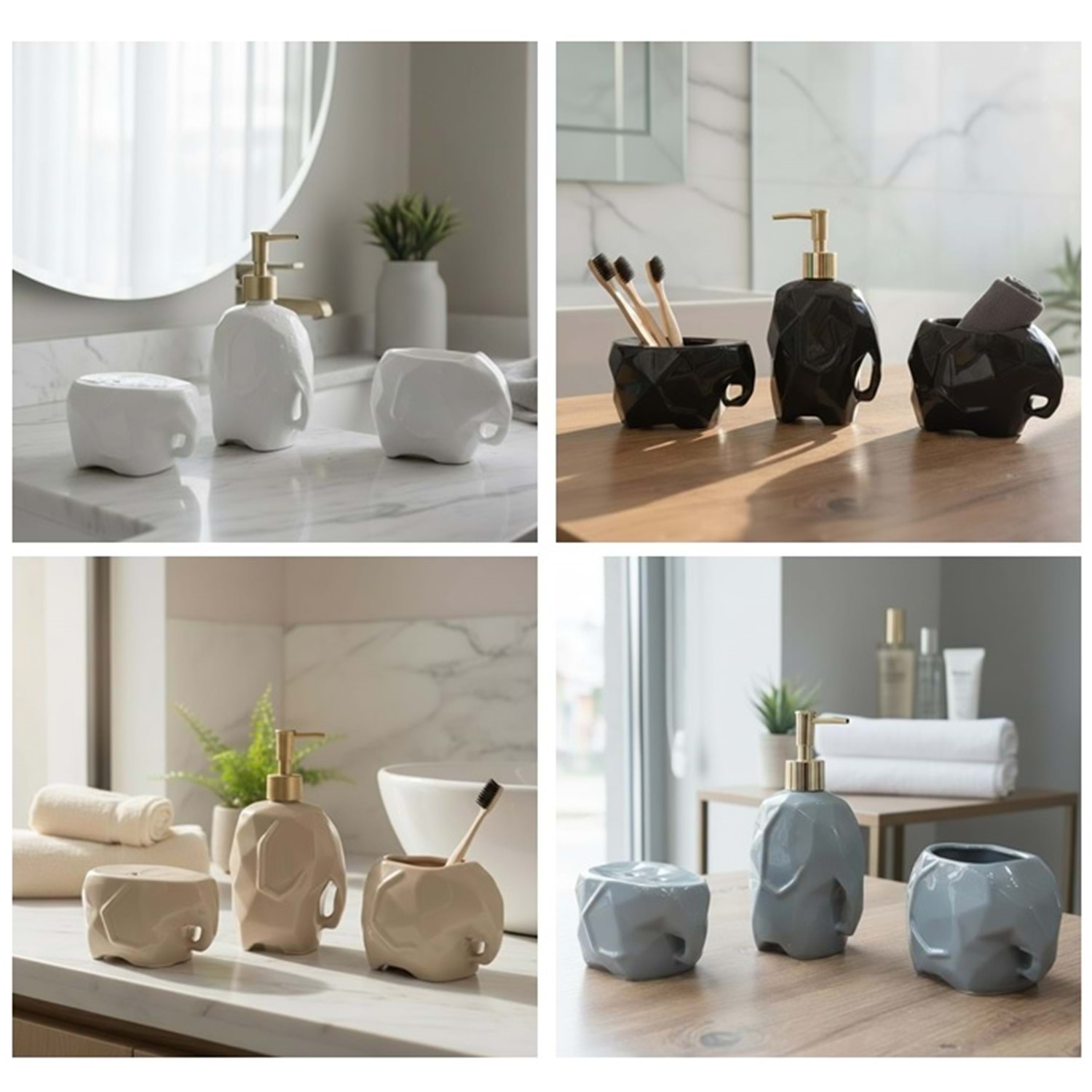 680 -BANYO SETİ FİLLİ 3LÜ PORS. -İPEK