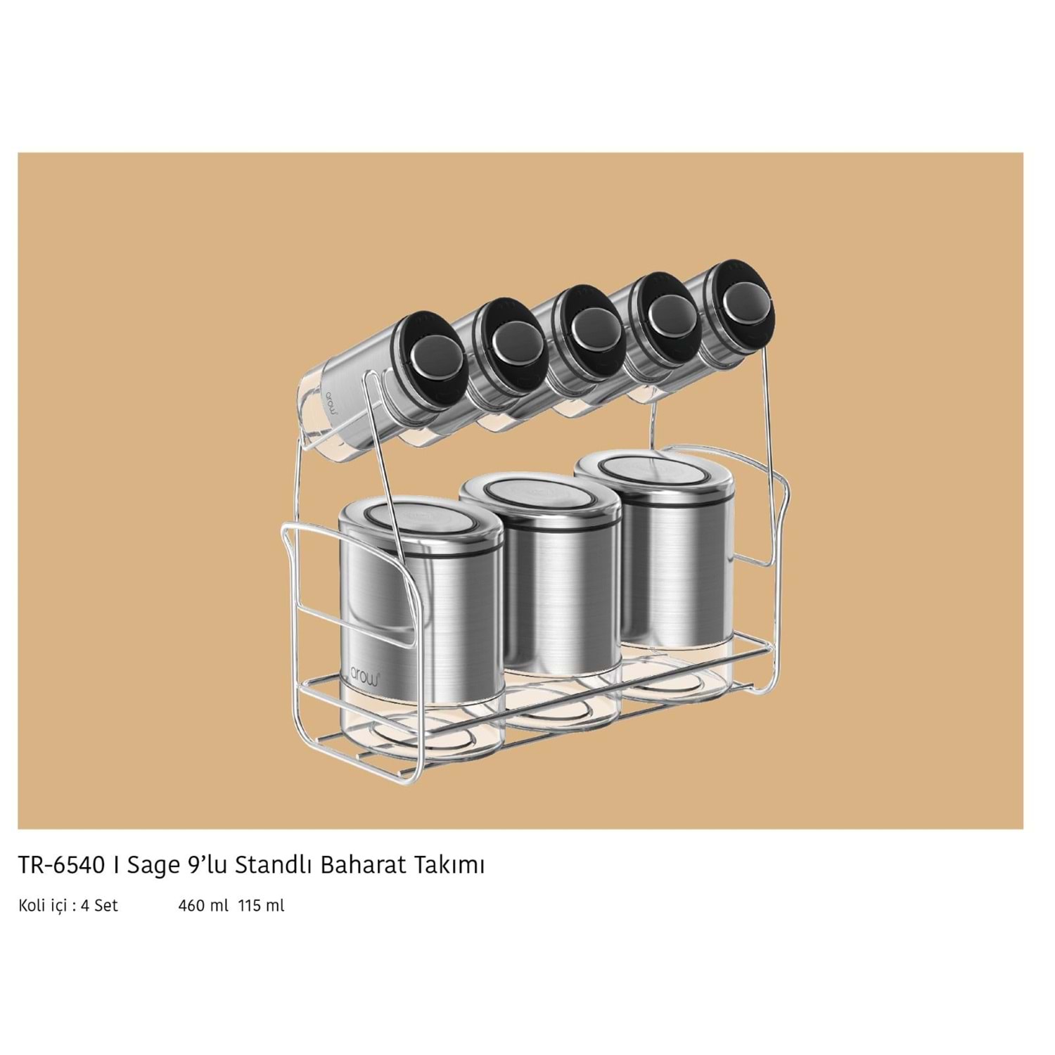 6540-BAHARAT 8Lİ TEL STAND İNOX SAGE -AROW