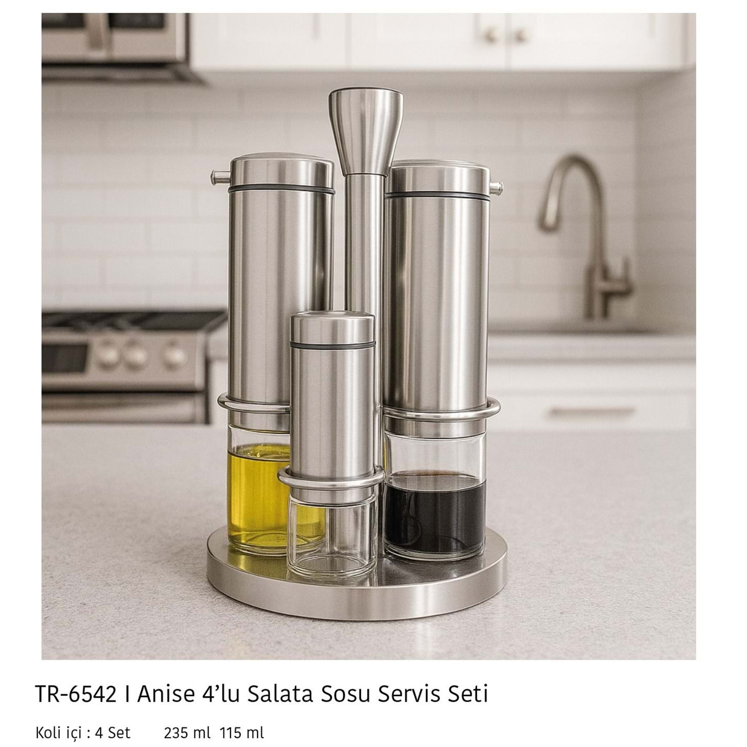 6542-YAĞLIK 4LÜ STANDLI İNOX ANİSE -AROW