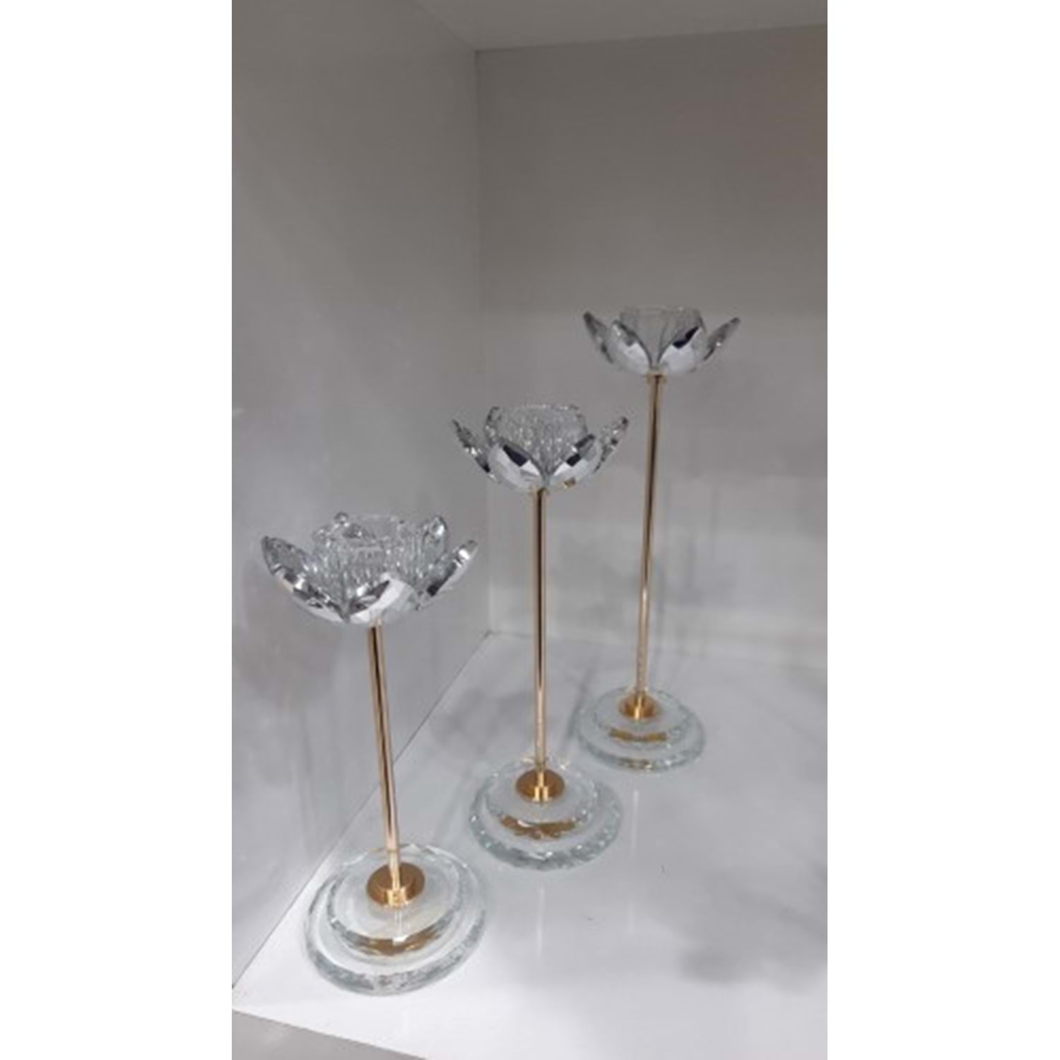 3114.A -KRİSTAL AYAKLI MUMLUK 3 LÜ GOLD -FURKAN