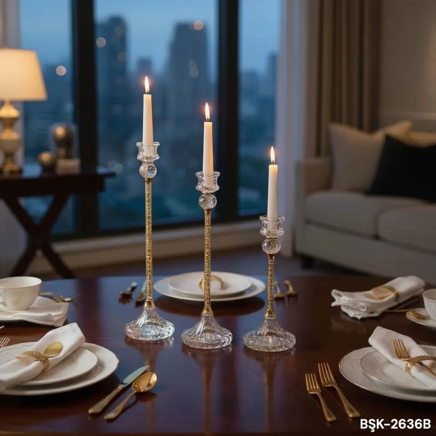 2636.B-KRİSTAL MUMLUK 3 LÜ GOLD -FURKAN